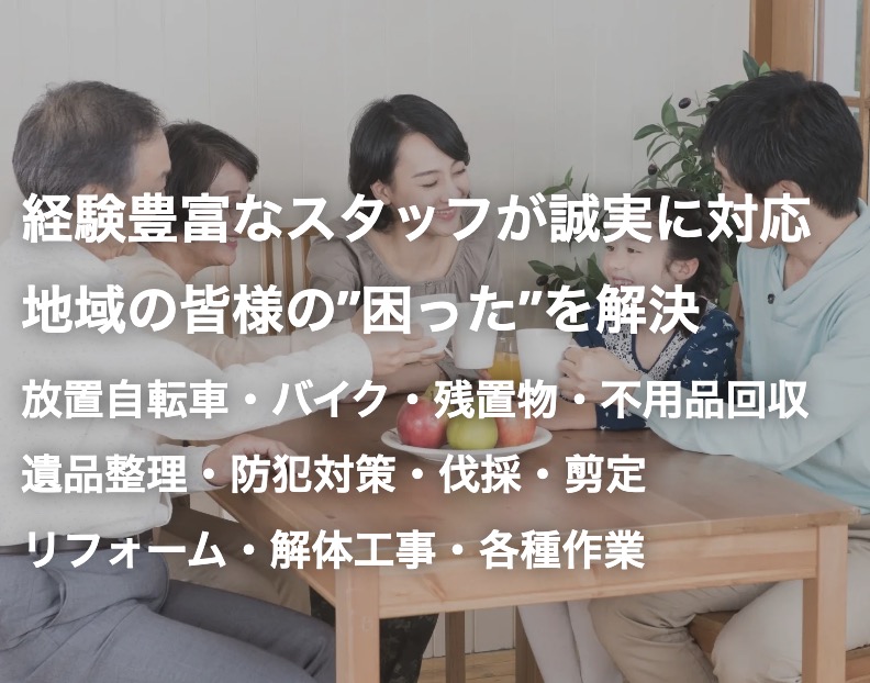 遺品整理やゴミ屋敷の片付けにも実績があり、状況に応じた最適な方法で回収を行います。柔軟に対応できる点が強みです。